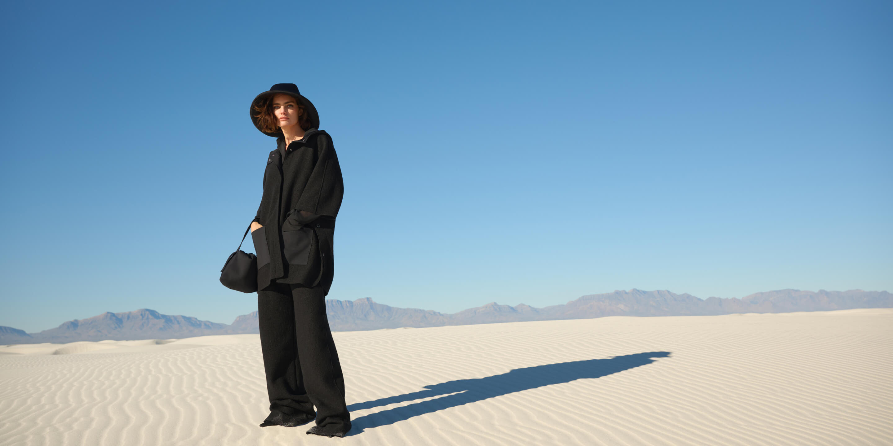 Пустынные горизонты сопровождают нас в завораживающем путешествии по идиллической утопии. Коллекция погружает в спокойную и сюрреалистичную атмосферу, в которой есть место простоте, созерцанию и гармонии. Кажется, что само время замирает – как ветер в волнообразных дюнах. Игра объема и прозрачности формирует современные силуэты, наполненные вневременным очарованием.