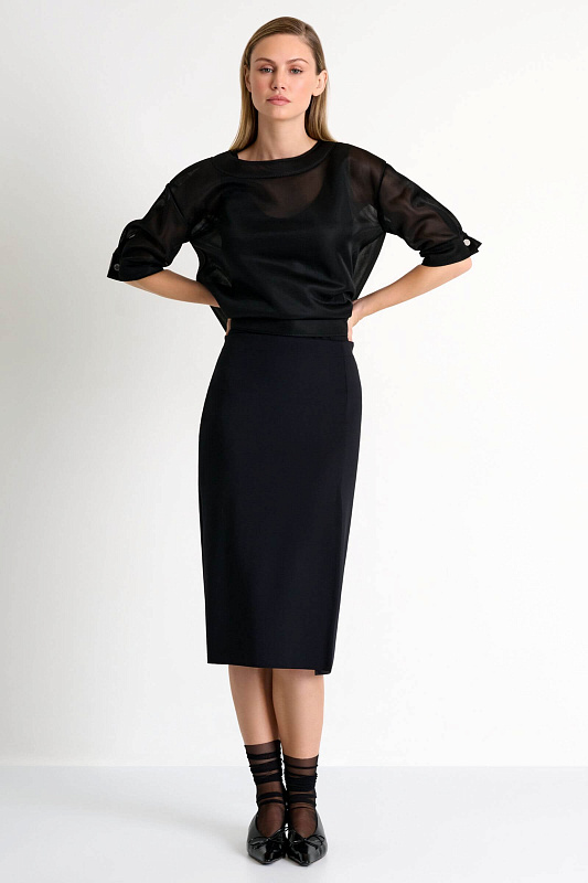 Sofia — линия пластики и движения. Тонкий биэластичный 3D-джерси обеспечивает безупречную фиксацию и поддержку силуэта, сохраняя мягкость и комфорт. Драпировки формируют скульптурный эффект, подчеркивая женственность и архитектурность формы. Продуманные конструкции создают чистые силуэты, которые легко адаптируются под разные сценарии жизни. Пальто и жакеты добавляют структуру, платье и юбка — текучесть и женственность, аксессуары завершают образ. Sofia — это современная интерпретация чувственного минимализма.