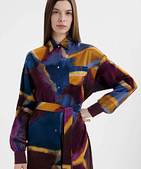 Шелковое платье-рубашка с поясом