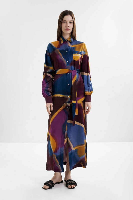 Шелковое платье-рубашка свободного кроя