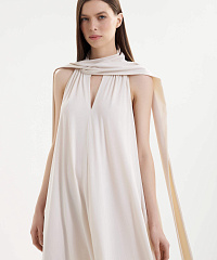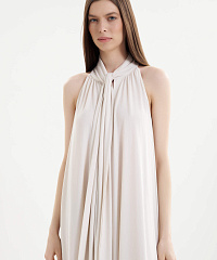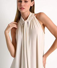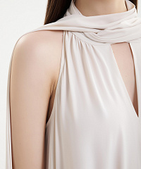 Линия Elisabeth — это тихая, уверенная элегантность, в которой форма подчиняется движению. Платье с воротником-аскот и блузка выполнены из мягкого и эластичного джерси с шелковистой драпировкой, плавно скользящей по силуэту и подчеркивающей естественную пластику тела. Материал дарит ощущение легкости и комфорта, сохраняя четкость линий и благородную посадку в течение дня. Сдержанная выразительность деталей создает образ вне времени — утонченный, собранный и глубоко женственный. Elisabeth — про стиль, который говорит негромко, но уверенно.