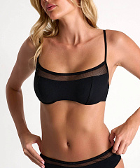 Линия Charlie звучит как уверенное fashion-заявление. Купальники выполнены из lycra jersey в сочетании с сеткой, создавая выразительную игру плотности и прозрачности. Четкие линии формируют скульптурный силуэт, подчеркивая фигуру и обеспечивая комфорт в движении. Это минимализм с характером — современный, чувственный и точный.